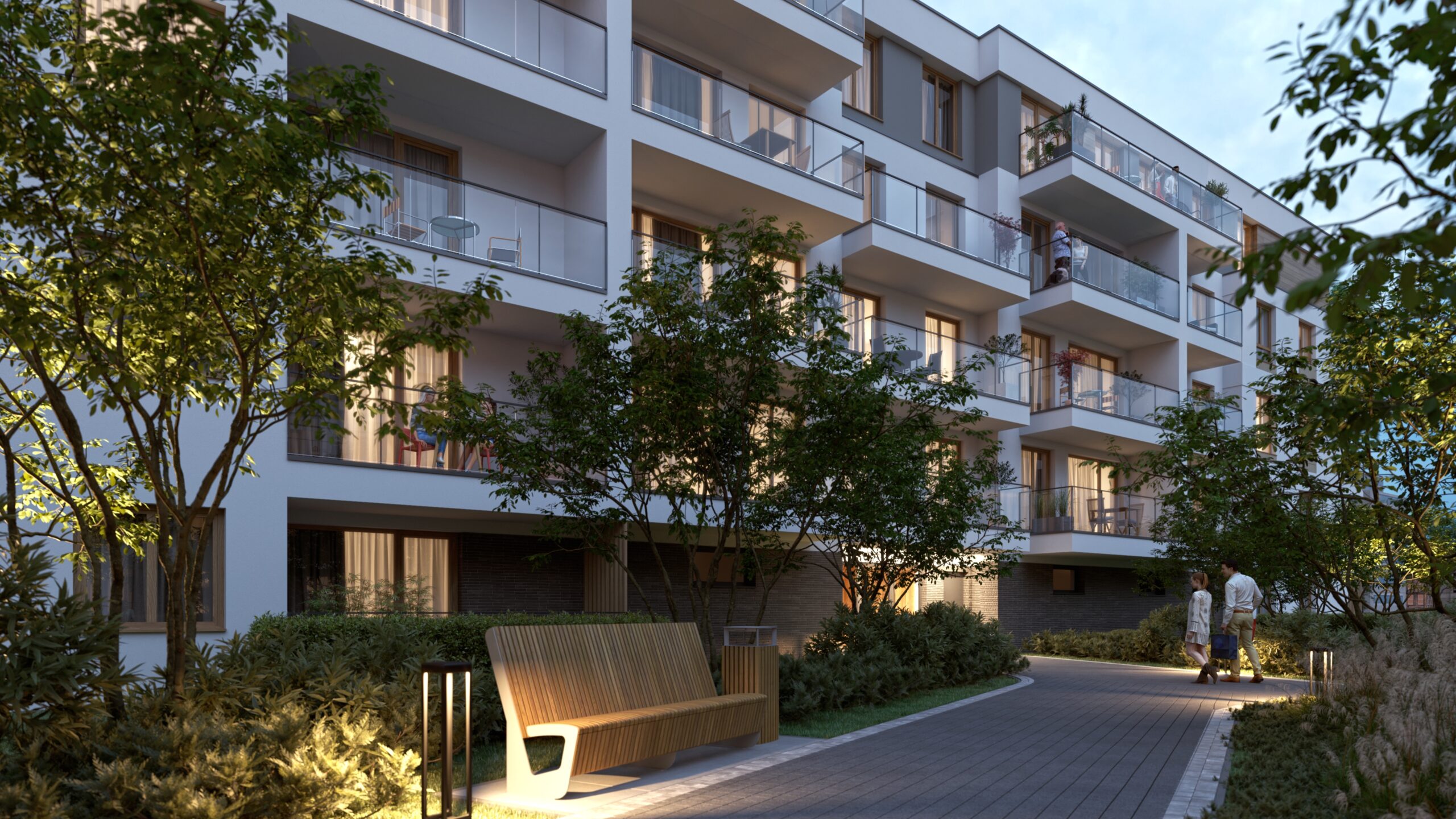 Na dziedzińcu zaplanowano bezpieczną strefę rekreacyjną dla dzieci – idealną do codziennej zabawy na świeżym powietrzu.
